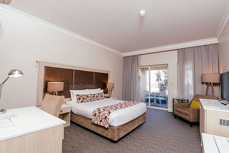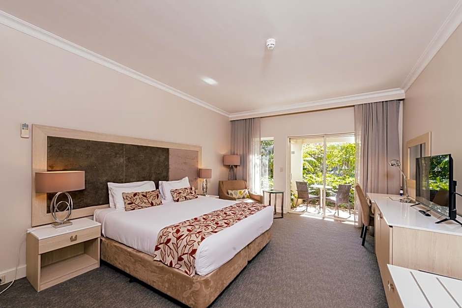Features a private balcony or courtyard overlooking landscaped gardens.
